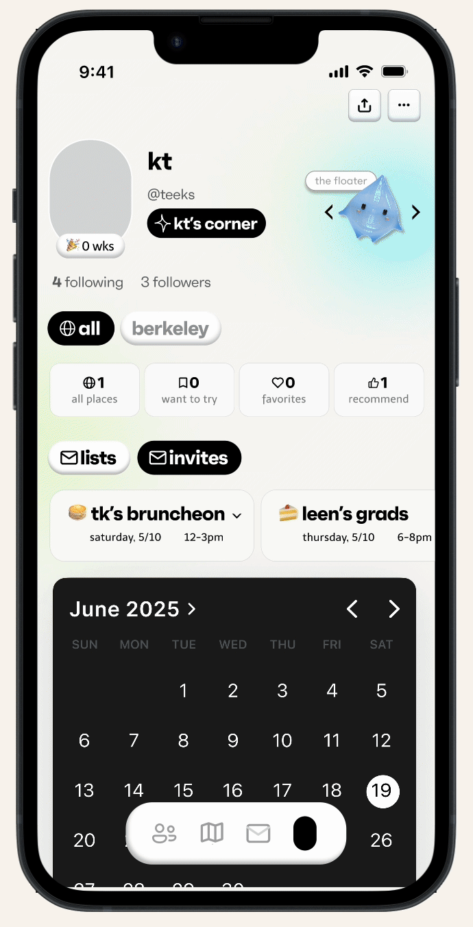 Plus, we’ve added a brand-new Invites tab, designed to help you manage all your upcoming plans in one place. With built-in calendar integration, you can see your schedule, check your friends’ availability, and coordinate without the usual groupchat back-and-forth chaos.