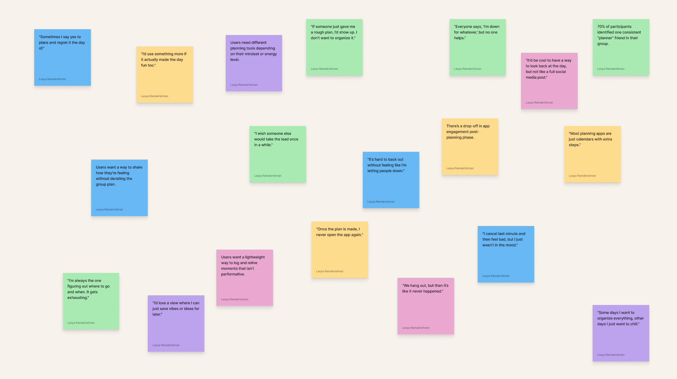 We started by bringing all our data together—user quotes, pain points, behaviors, and observations. Then we mapped and grouped similar insights to identify emerging patterns and key themes. This helped us understand not just what users said, but why they felt that way.
