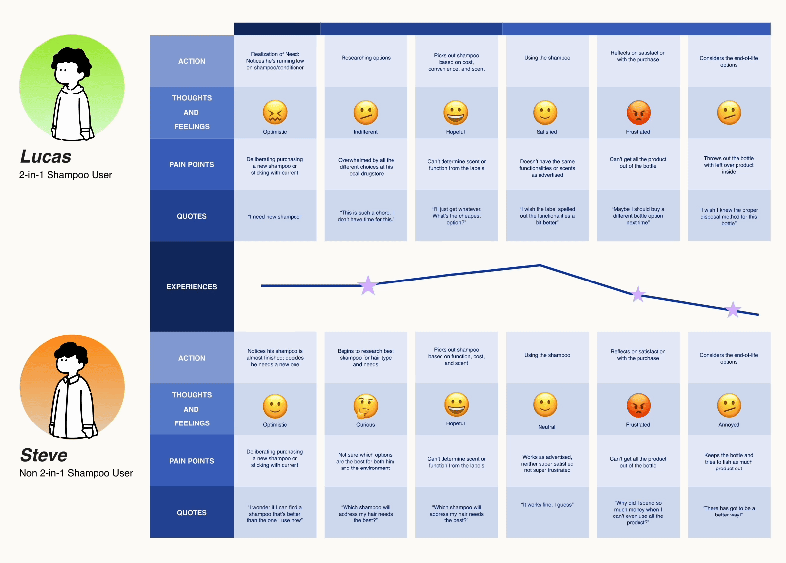 Through our research, we discovered that while the needs and wants of 2-in-1 users and non-users varied, they shared common pain points at key moments in the user journey: